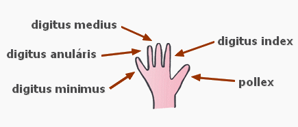 1.Quínque digití sunt: pollex, digitus index, digitus medius, digitus anuláris et digitus minimus.