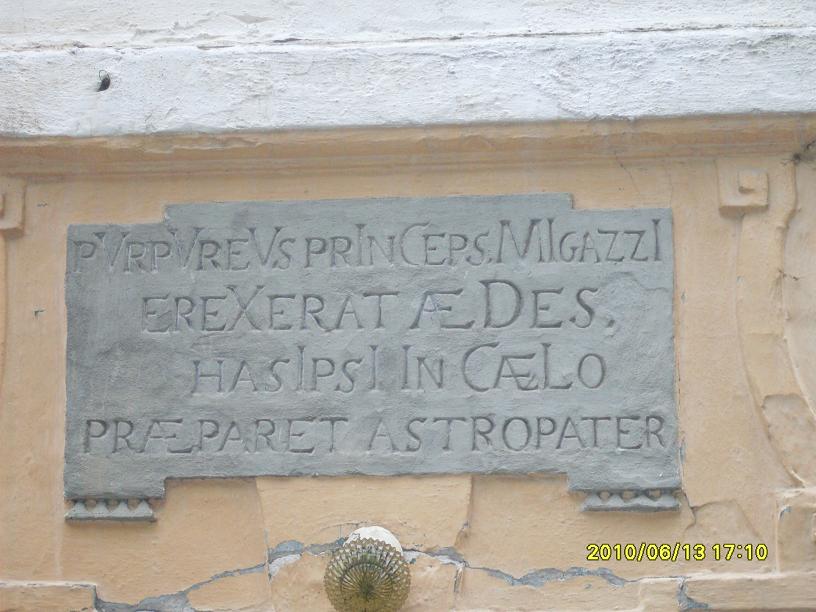 Purpureus princeps - purpurový kníže - v tomto případě ale zastává význam kardinál, erexerat je perfektní tvar od slovesa erigo - vztyčit, postavit, aedes - sídlo, has se vztahuje právě k aedes a ipsi pak k princeps. Astropater zastupuje Boha, zde nebeského Otce. Překlad opět pod žárovičkou.