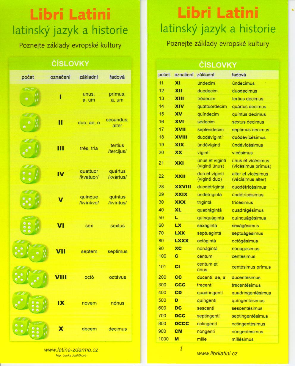 Připravili jsme pro Vás záložku s latinskými základními a řadovými číslovkami.