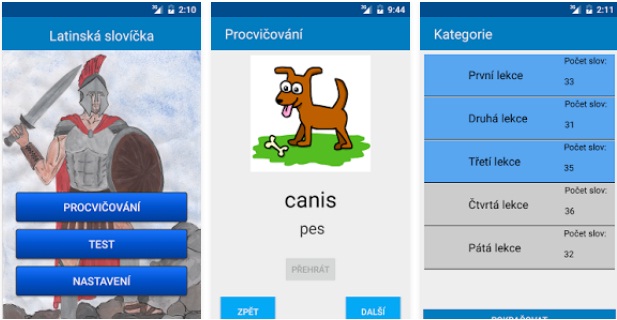 Od podzimu 2017 vzniká výuková aplikace, kterou využijete k biflování slovní zásoby. Bude nějakou dobu trvat, než program naplníme slovíčky, obrázky a zvuky, ale věřím, že i tak začnete naši aplikaci brzo používat. Budeme rádi za hodnocení, náměty a nápady. Ke stažení aplikace Latinská slovíčka